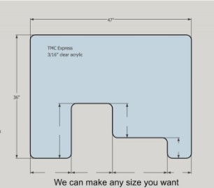 Register Sneeze Guard - ExpressTMC ExpressPlease call for prices.Due to plastic sheet demandprices fluctuate from week to week.Do you need a custom size or shape?We can make it !